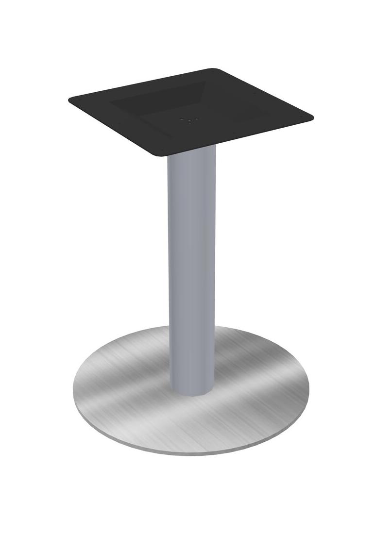 Piètement De Table Modulaire Pour Bureaux, Restaurants, Cafétérias, Salles De Pause Et Services De Restauration, Avec Plateau Noir, Pieds Ronds Gris Et Base Ronde Chromée