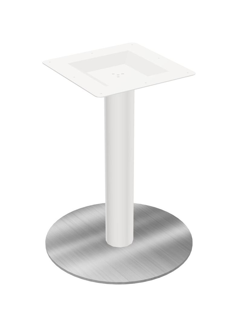 Piètement De Table Modulaire Pour Bureaux, Restaurants, Cafétérias, Salles De Pause Et Services De Restauration, Avec Plateau Blanc, Pieds Ronds Blancs Et Base Ronde Chromée