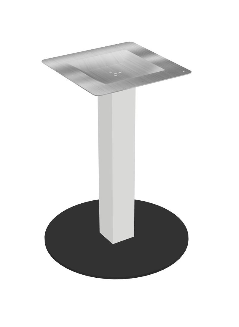 Piètement De Table Modulaire Pour Bureaux, Restaurants, Cafétérias, Salles De Pause Et Services De Restauration, Avec Plateau Chromé, Pieds Carrés Blancs Et Base Ronde Noire