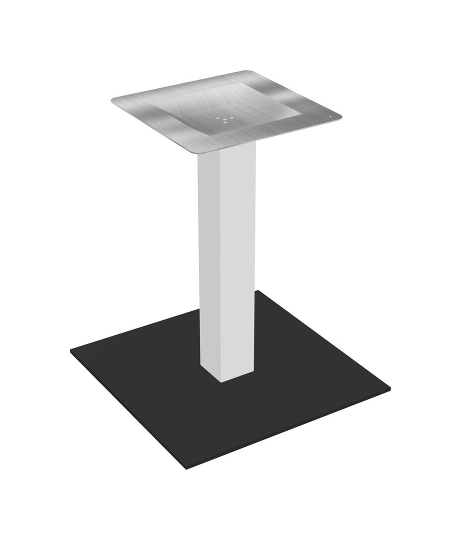 Piètement De Table Modulaire Pour Bureaux, Restaurants, Cafétérias, Salles De Pause Et Services De Restauration, Avec Plateau Chromé, Pieds Carrés Blancs Et Base Carrée Noire
