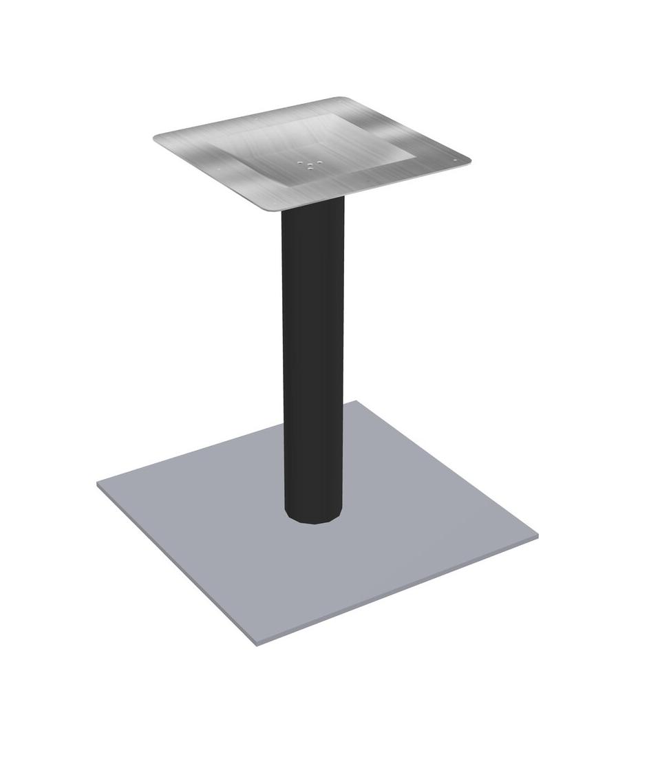Piètement De Table Modulaire Pour Bureaux, Restaurants, Cafétérias, Salles De Pause Et Services De Restauration, Avec Plateau Chromé, Pieds Ronds Noirs Et Base Carrée Grise