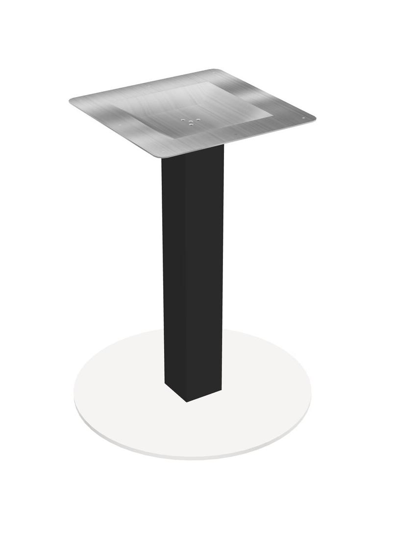 Piètement De Table Modulaire Pour Bureaux, Restaurants, Cafétérias, Salles De Pause Et Services De Restauration, Avec Plateau Chromé, Pieds Carrés Noirs Et Base Ronde Blanche