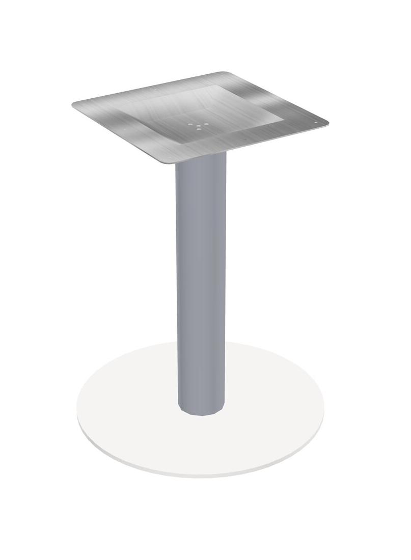 Piètement De Table Modulaire Pour Bureaux, Restaurants, Cafétérias, Salles De Pause Et Services De Restauration, Avec Plateau Chromé, Pieds Ronds Gris Et Base Ronde Blanche