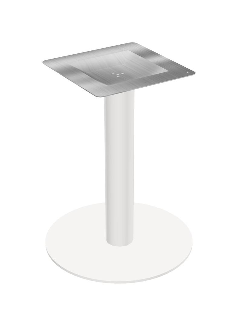 Piètement De Table Modulaire Pour Bureaux, Restaurants, Cafétérias, Salles De Pause Et Services De Restauration, Avec Plateau Chromé, Pieds Ronds Blancs Et Base Ronde Blanche