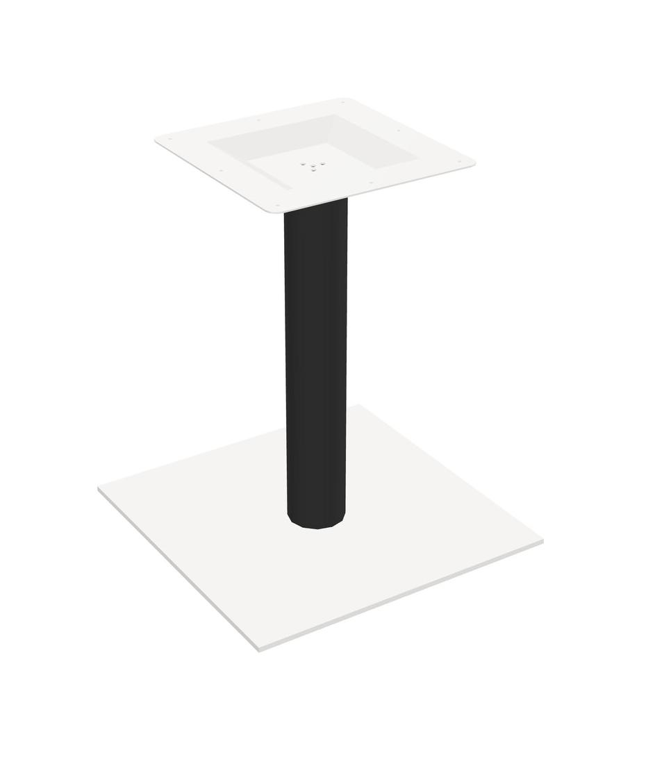 Piètement De Table Modulaire Pour Bureaux, Restaurants, Cafétérias, Salles De Pause Et Services De Restauration, Avec Plateau Blanc, Pieds Ronds Noirs Et Base Carrée Blanche