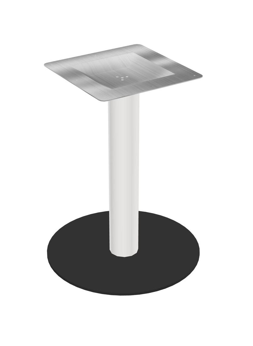 Piètement De Table Modulaire Pour Bureaux, Restaurants, Cafétérias, Salles De Pause Et Services De Restauration, Avec Plateau Chromé, Pieds Ronds Blancs Et Base Ronde Noire