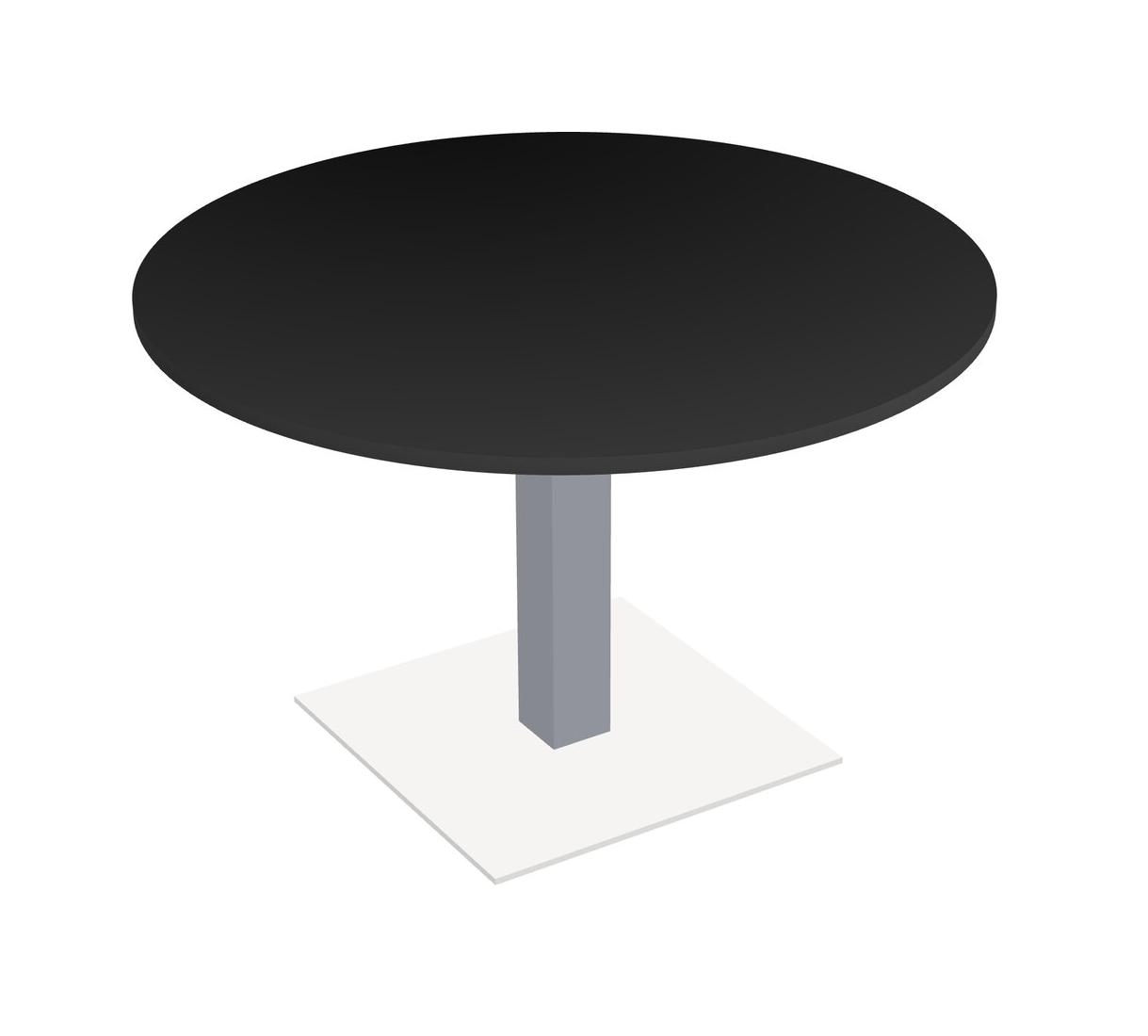 Table Modulaire Pour Bureau, Restaurant, Cafétéria, Salle De Pause Et Service De Restauration, Avec Plateau Noir, Pieds Carrés Gris Et Base Carrée Blanche