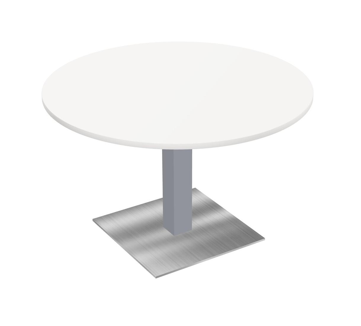 Table Modulaire Pour Bureau, Restaurant, Cafétéria, Salle De Pause Et Service De Restauration, Avec Plateau Blanc, Pieds Carrés Gris Et Plaque De Base Carrée Chromée