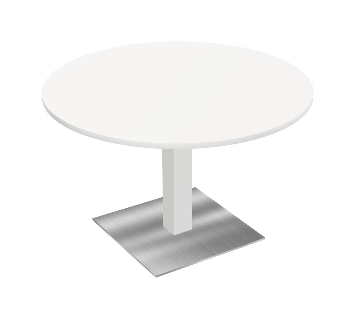 Table Modulaire Pour Bureau, Restaurant, Cafétéria, Salle De Pause Et Service De Restauration, Avec Plateau Blanc, Pieds Carrés Blancs Et Base Carrée Chromée