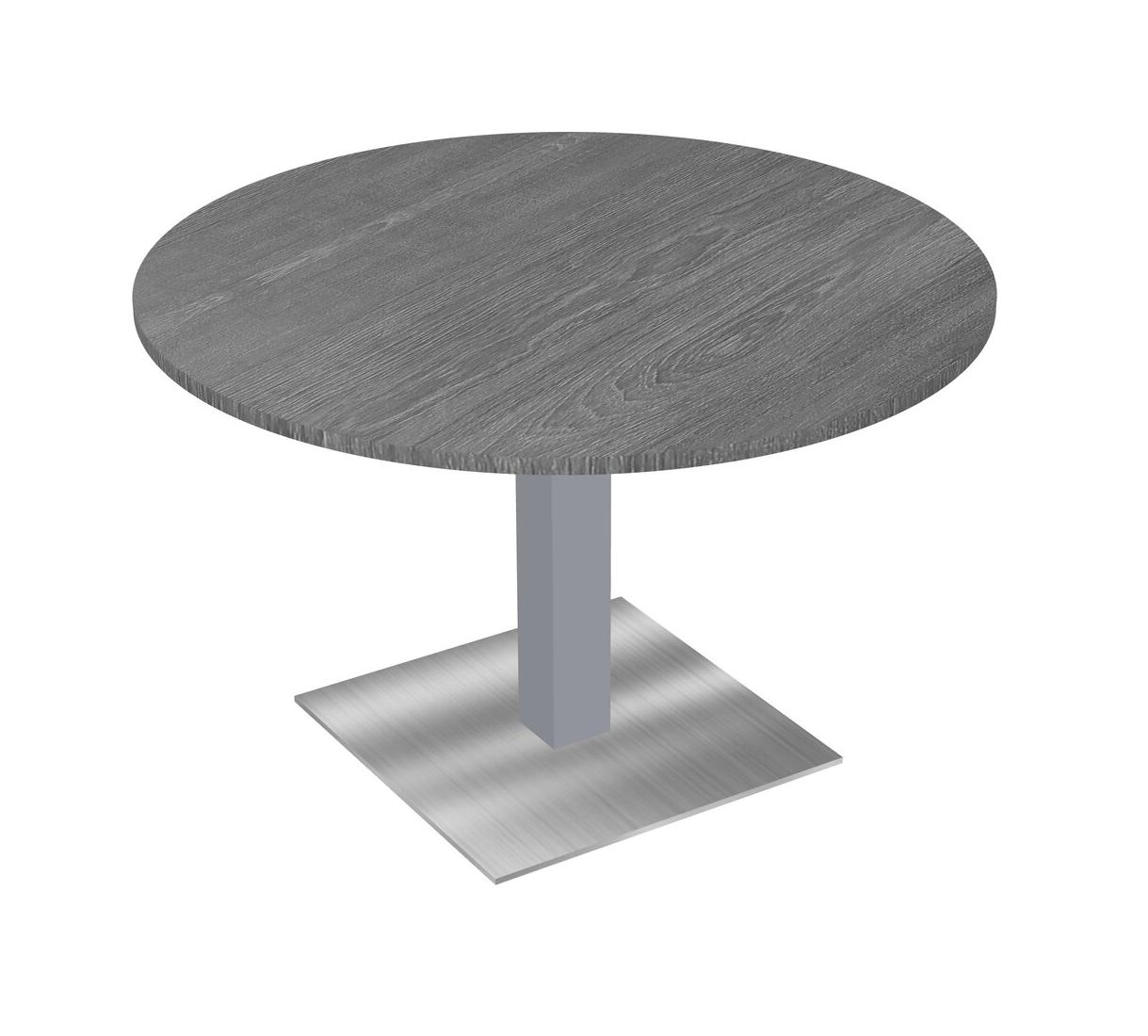 Table Modulaire Pour Bureau, Restaurant, Cafétéria, Salle De Pause Et Service De Restauration, Avec Plateau Gris, Pieds Carrés Gris Et Base Carrée Chromée