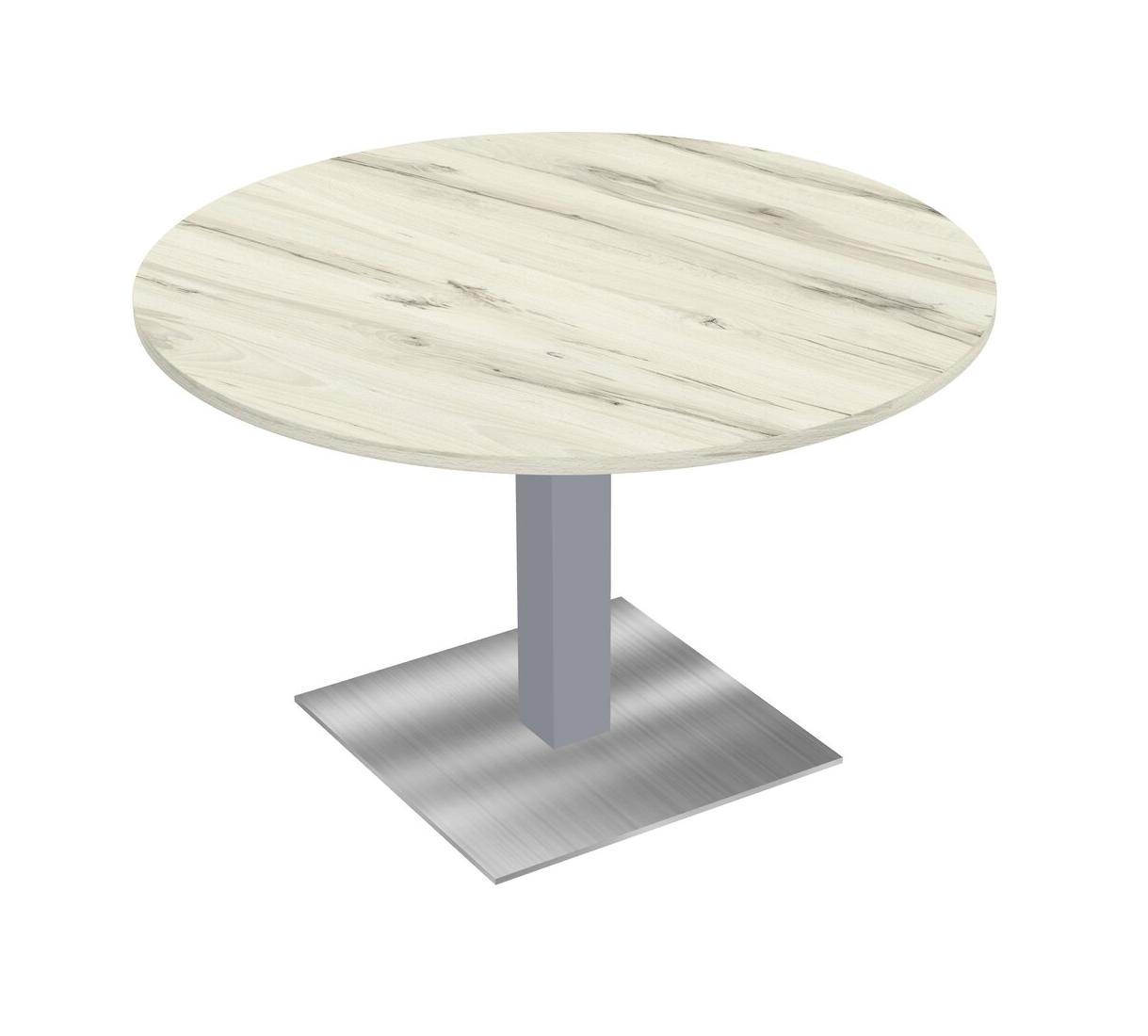 Table Modulaire Pour Bureau, Restaurant, Cafétéria, Salle De Pause Et Service De Restauration, Avec Plateau En Bois Heinne Holz, Pieds Carrés Gris Et Plaque De Base Carrée Chromée