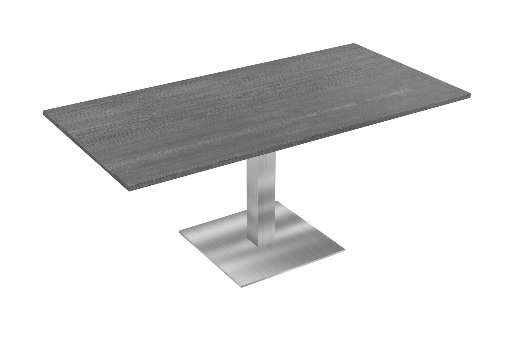 Table Modulaire Pour Bureau, Restaurant, Cafétéria, Salle De Pause Et Service De Restauration, Avec Plateau Gris, Pieds Carrés Chromés Et Plaque De Base Carrée Chromée