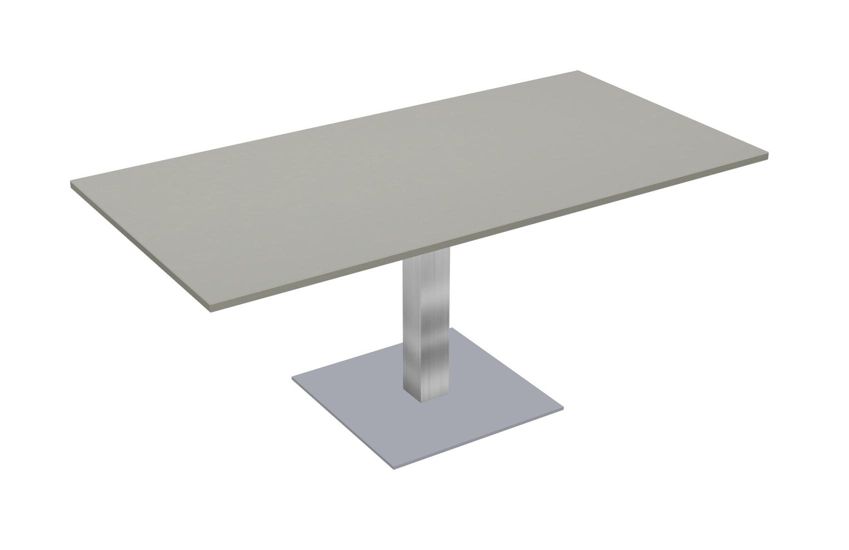 Table Modulaire Pour Bureau, Restaurant, Cafétéria, Salle De Pause Et Service De Restauration, Avec Plateau Gris Anthracite, Pieds Carrés Chromés Et Plaque De Base Carrée Grise