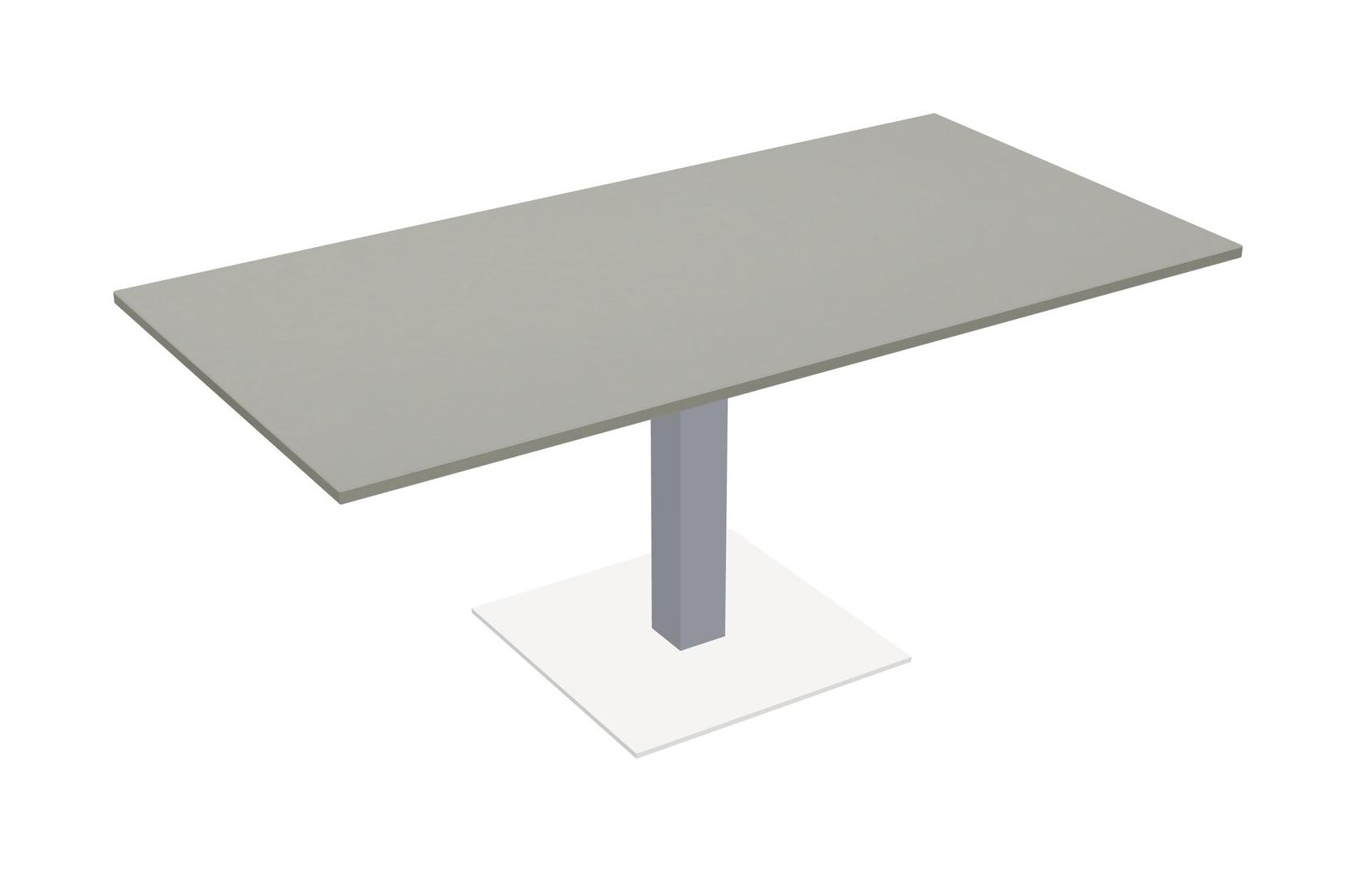 Table Modulaire Pour Bureau, Restaurant, Cafétéria, Salle De Pause Et Service De Restauration, Avec Plateau Gris Anthracite, Pieds Carrés Gris Et Base Carrée Blanche