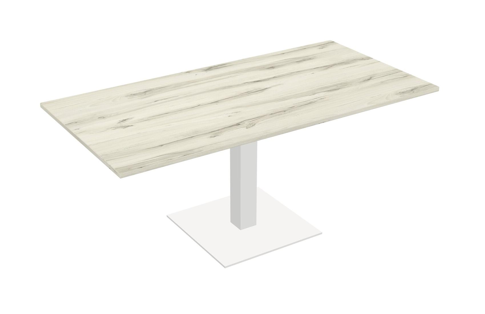 Table Modulaire Pour Bureau, Restaurant, Cafétéria, Salle De Pause Et Service De Restauration, Avec Plateau En Bois Heinne Holz, Pieds Carrés Blancs Et Plaque De Base Carrée Blanche