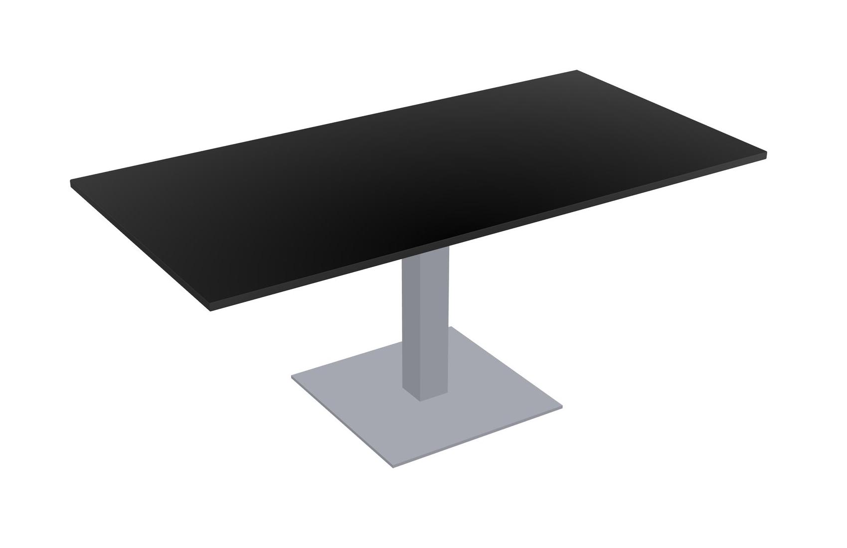 Table Modulaire Pour Bureau, Restaurant, Cafétéria, Salle De Pause Et Service De Restauration, Avec Plateau Noir, Pieds Carrés Gris Et Plaque De Base Carrée Grise