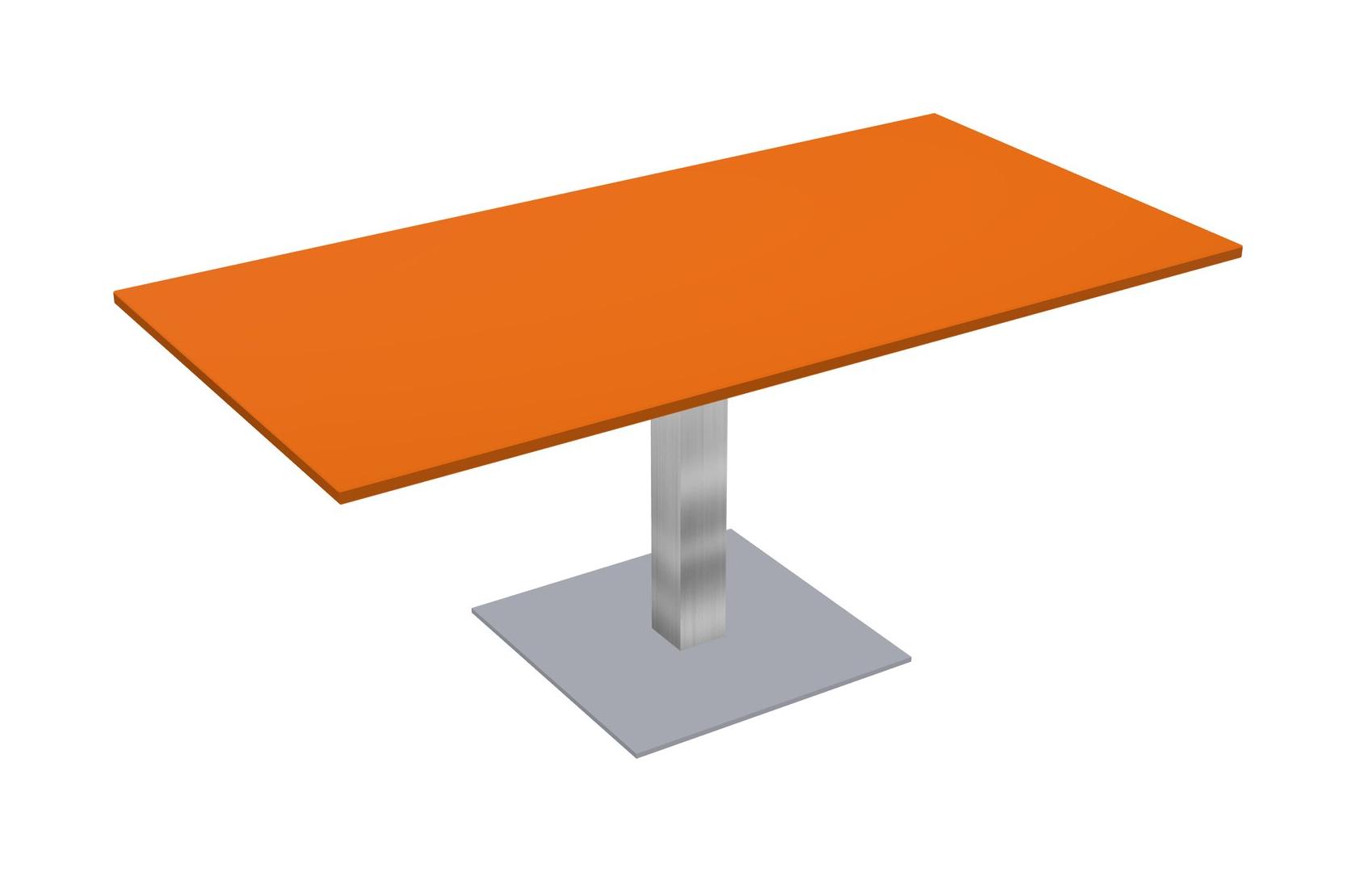 Table Modulaire Pour Bureau, Restaurant, Cafétéria, Salle De Pause Et Service De Restauration, Avec Plateau Orange, Pieds Carrés Chromés Et Plaque De Base Carrée Grise