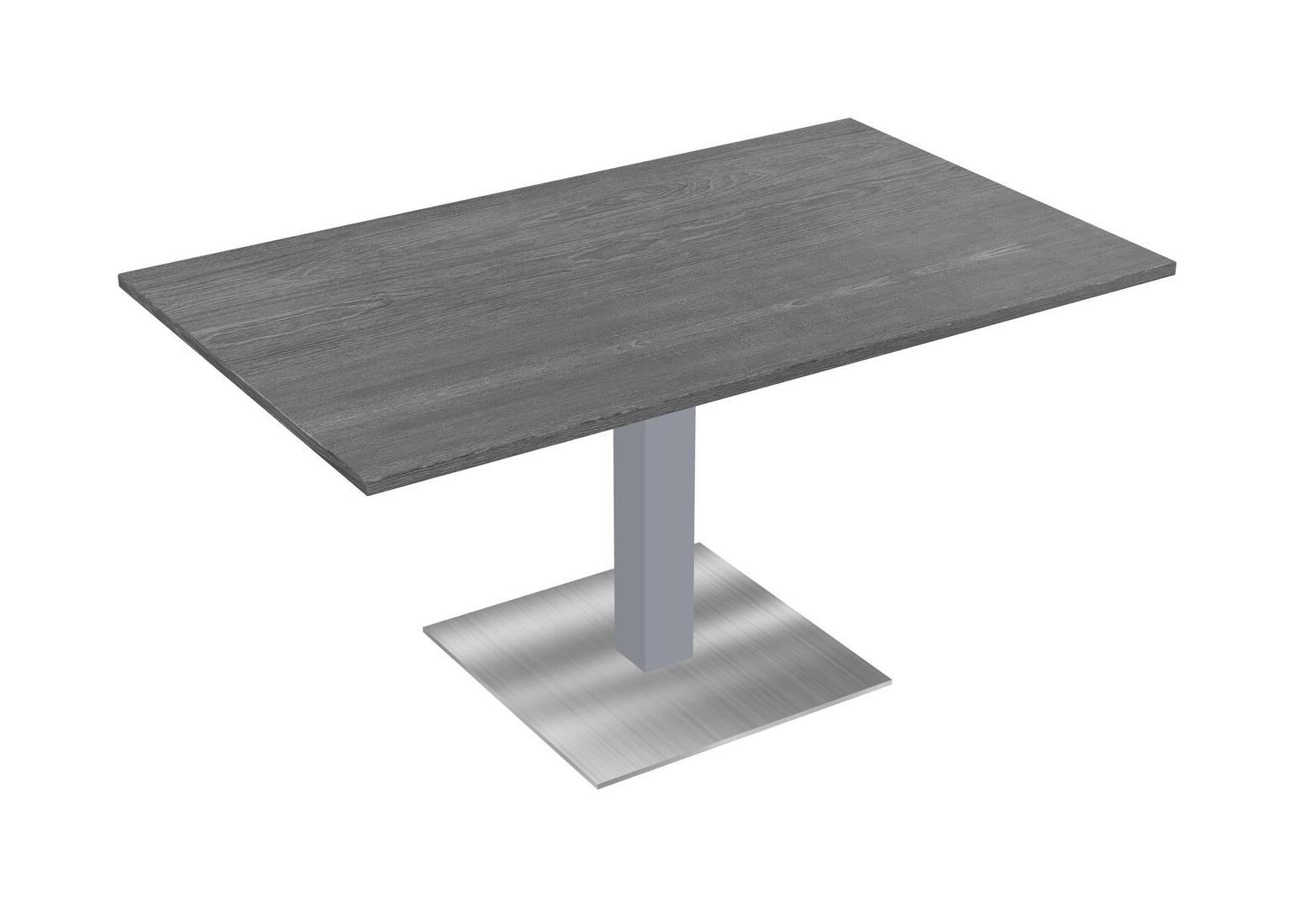 Table Modulaire Pour Bureau, Restaurant, Cafétéria, Salle De Pause Et Service De Restauration, Avec Plateau Gris, Pieds Carrés Gris Et Base Carrée Chromée