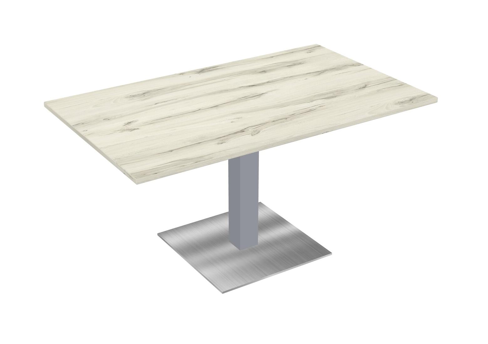 Table Modulaire Pour Bureau, Restaurant, Cafétéria, Salle De Pause Et Service De Restauration, Avec Plateau En Bois Heinne Holz, Pieds Carrés Gris Et Plaque De Base Carrée Chromée