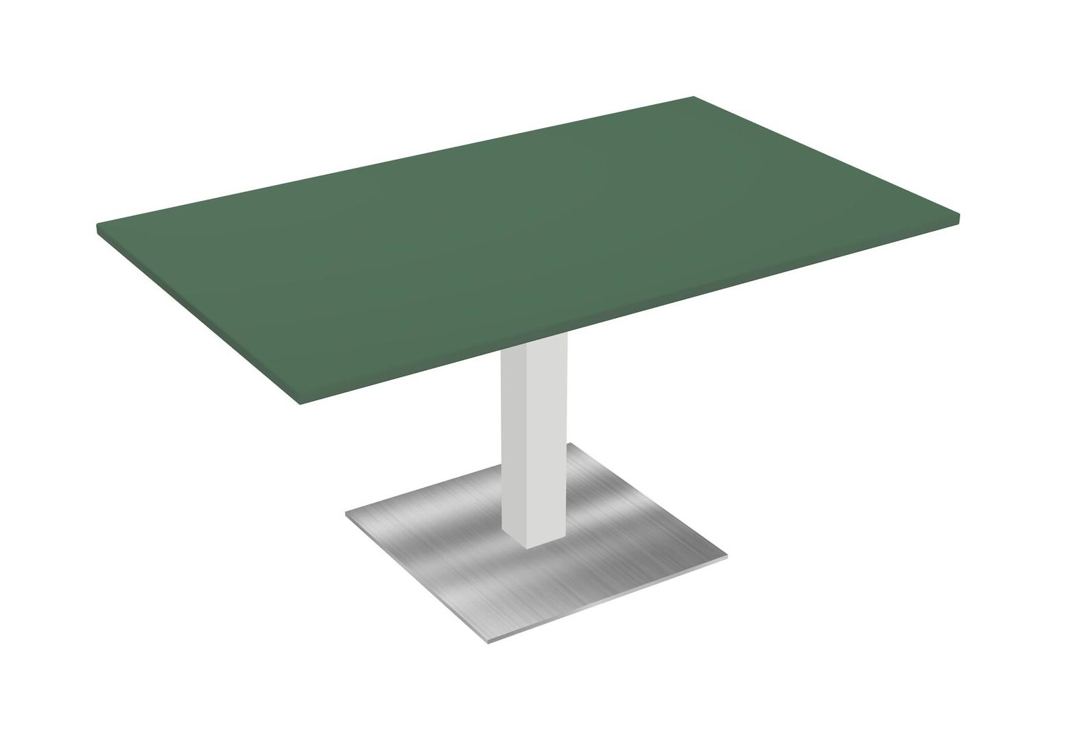 Table Modulaire Pour Bureau, Restaurant, Cafétéria, Salle De Pause Et Service De Restauration, Avec Plateau Vert, Pieds Carrés Blancs Et Base Carrée Chromée