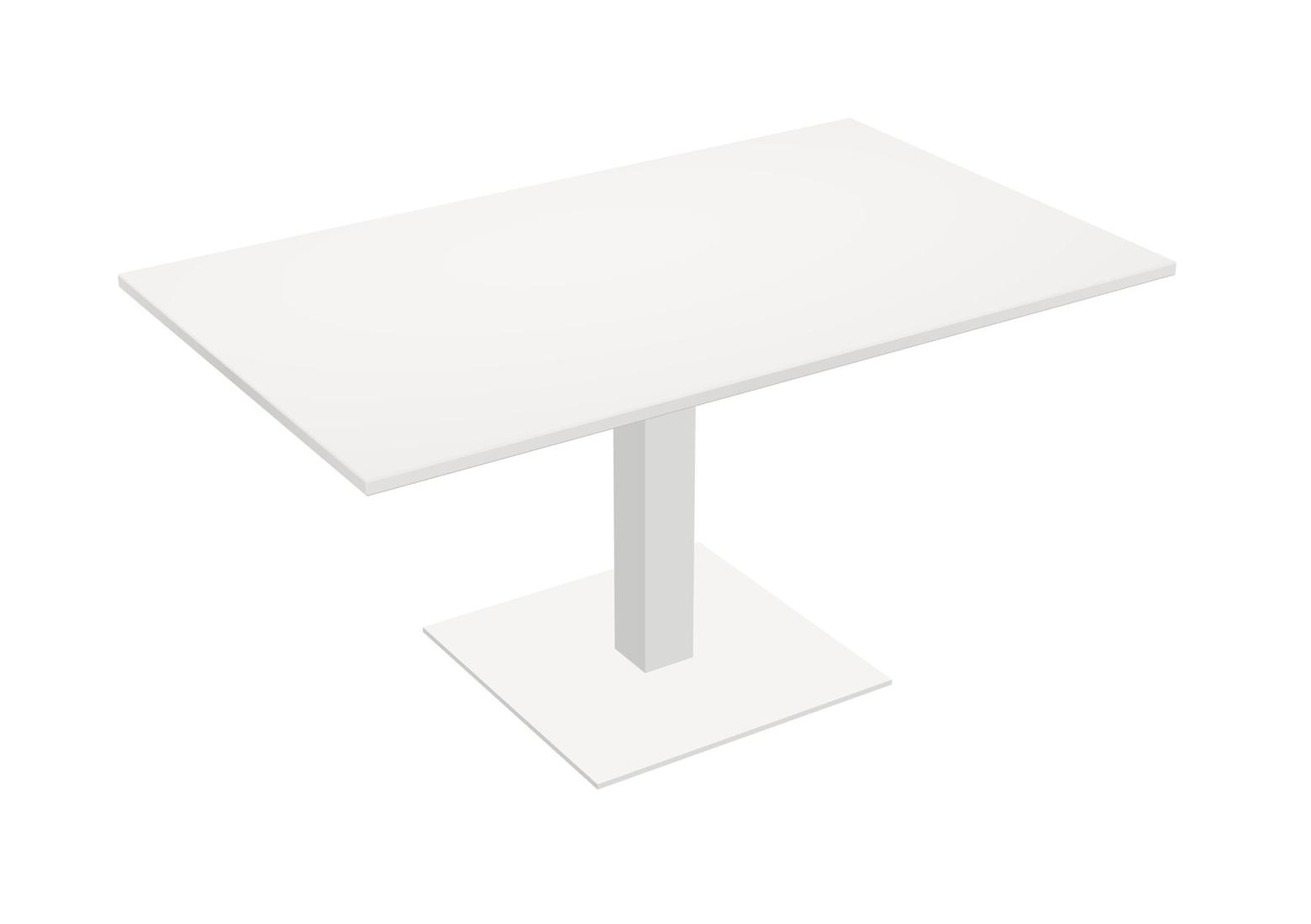 Table Modulaire Pour Bureau, Restaurant, Cafétéria, Salle De Pause Et Service De Restauration, Avec Plateau Blanc, Pieds Carrés Blancs Et Base Carrée Blanche