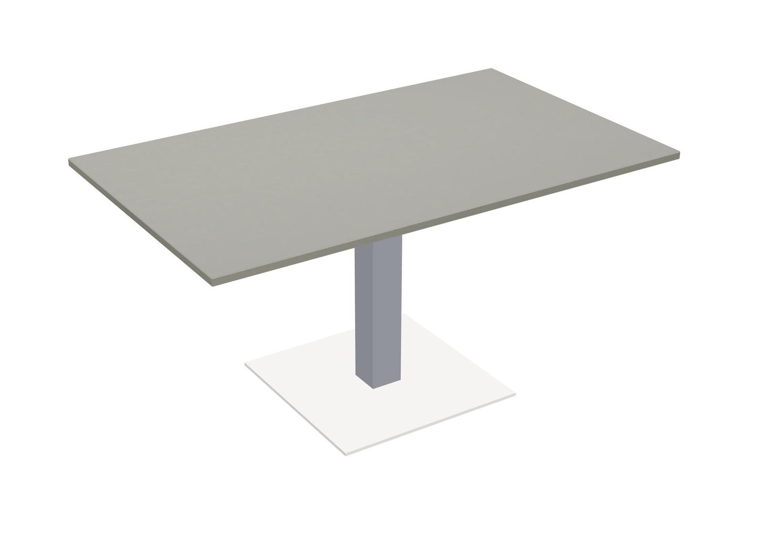 Table Modulaire Pour Bureau, Restaurant, Cafétéria, Salle De Pause Et Service De Restauration, Avec Plateau Gris Anthracite, Pieds Carrés Gris Et Base Carrée Blanche