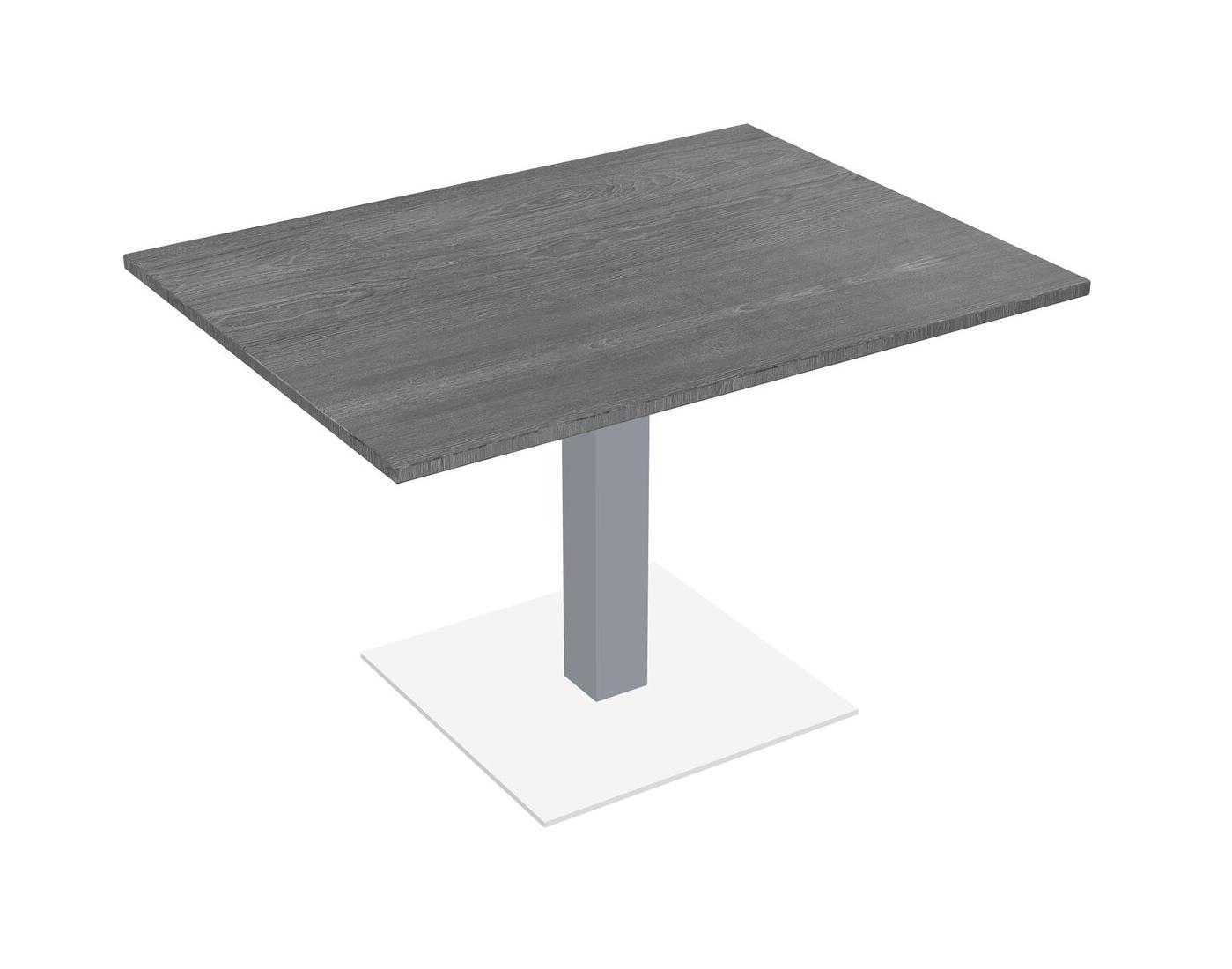 Table Modulaire Pour Bureau, Restaurant, Cafétéria, Salle De Pause Et Service De Restauration, Avec Plateau Gris, Pieds Carrés Gris Et Base Carrée Blanche