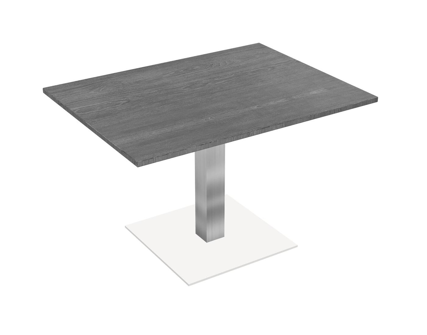 Table Modulaire Pour Bureau, Restaurant, Cafétéria, Salle De Pause Et Service De Restauration, Avec Plateau Gris, Pieds Carrés Chromés Et Base Carrée Blanche