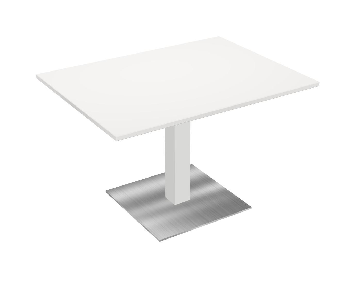 Table Modulaire Pour Bureau, Restaurant, Cafétéria, Salle De Pause Et Service De Restauration, Avec Plateau Blanc, Pieds Carrés Blancs Et Base Carrée Chromée