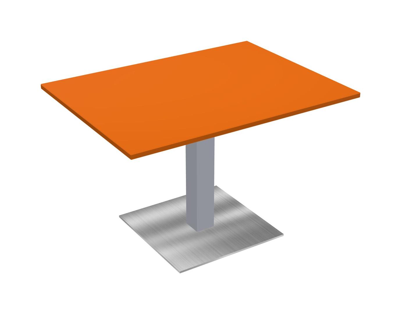 Table Modulaire Pour Bureau, Restaurant, Cafétéria, Salle De Pause Et Service De Restauration, Avec Plateau Orange, Pieds Carrés Gris Et Plaque De Base Carrée Chromée