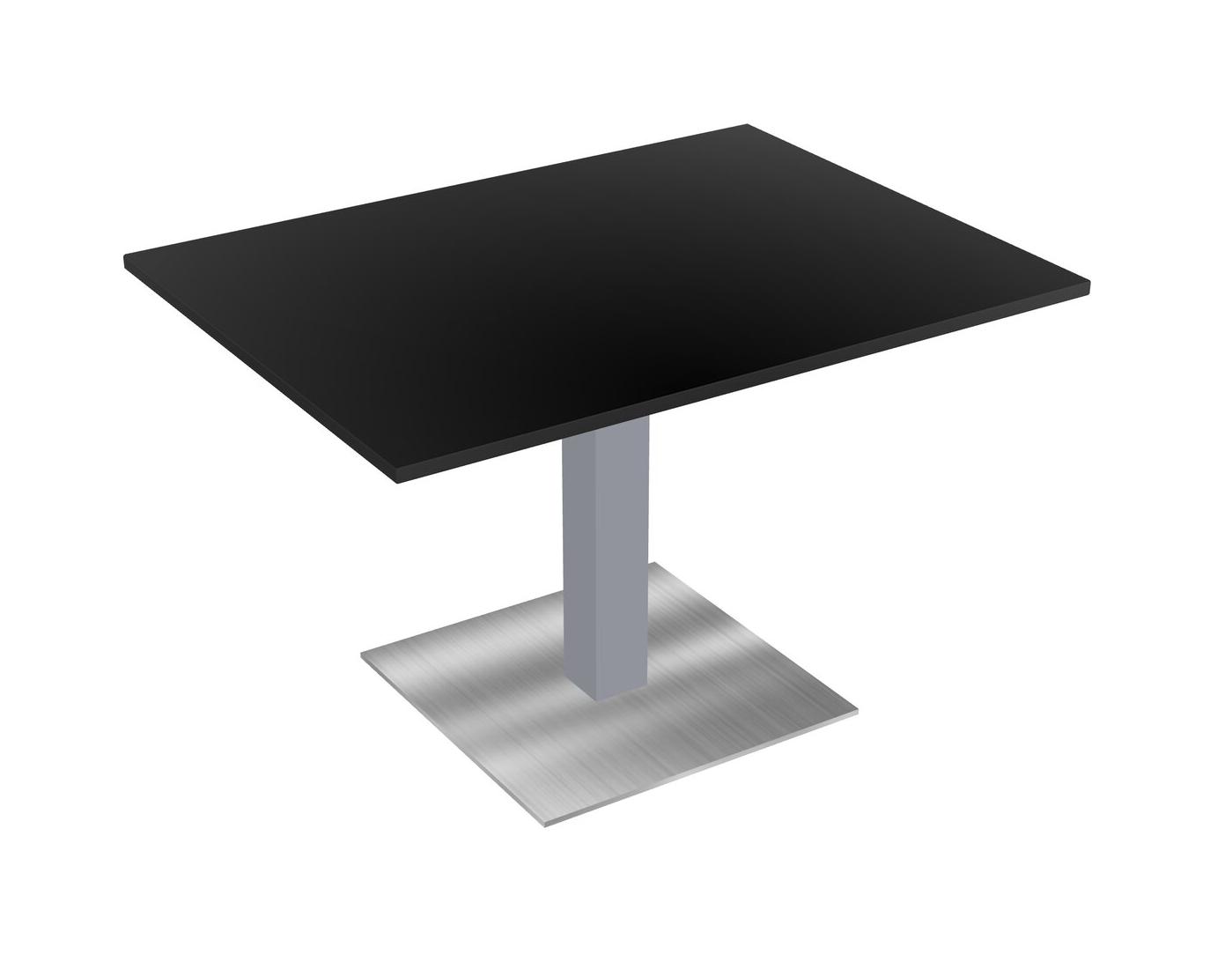 Table Modulaire Pour Bureau, Restaurant, Cafétéria, Salle De Pause Et Service De Restauration, Avec Plateau Noir, Pieds Carrés Gris Et Plaque De Base Carrée Chromée