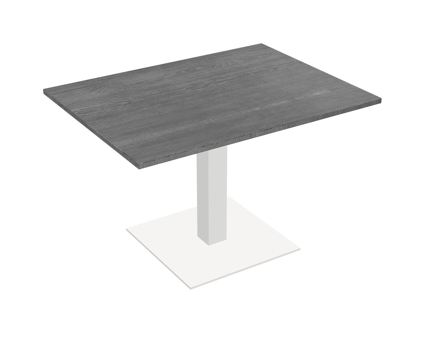 Table Modulaire Pour Bureau, Restaurant, Cafétéria, Salle De Pause Et Service De Restauration, Avec Plateau Gris, Pieds Carrés Blancs Et Base Carrée Blanche