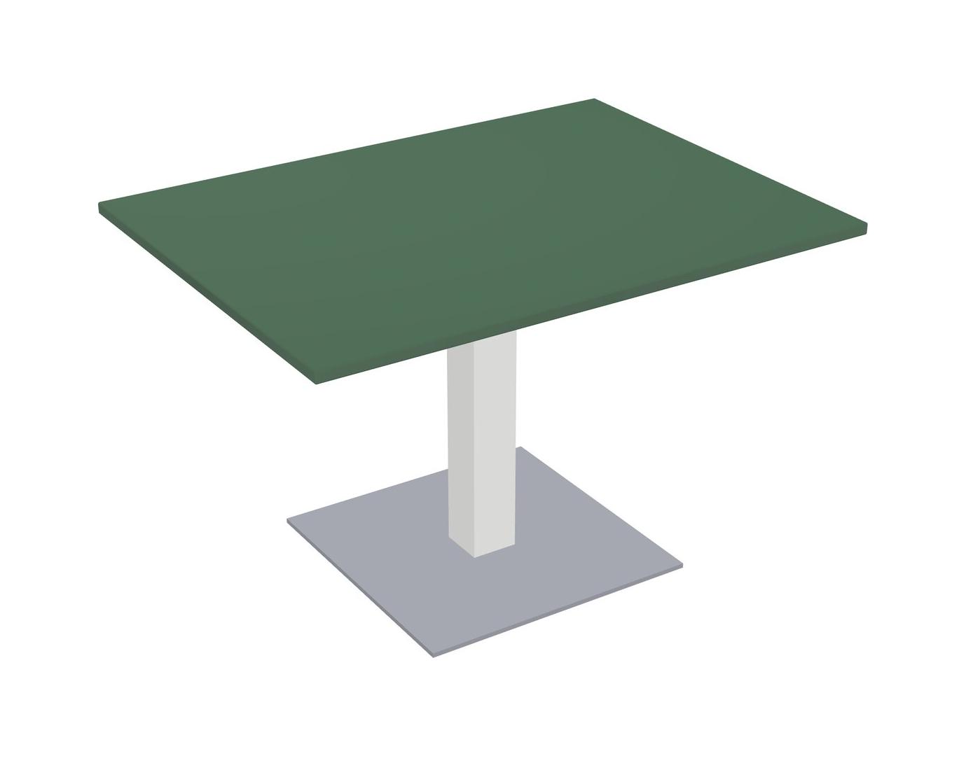 Table Modulaire Pour Bureau, Restaurant, Cafétéria, Salle De Pause Et Service De Restauration, Avec Plateau Vert, Pieds Carrés Blancs Et Base Carrée Grise