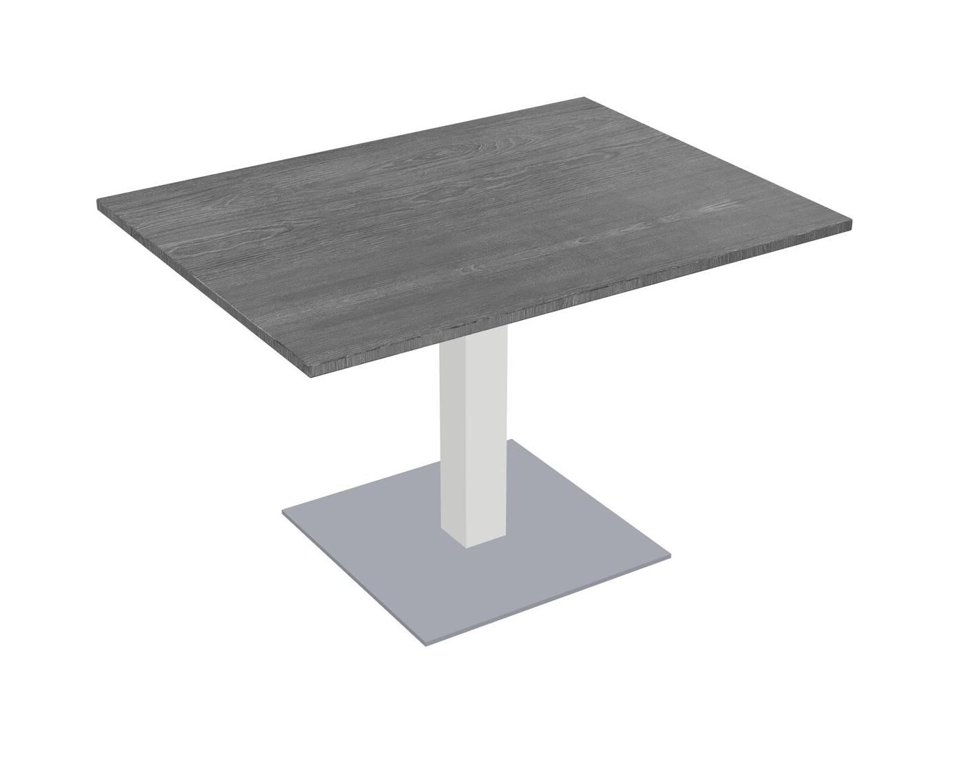 Table Modulaire Pour Bureau, Restaurant, Cafétéria, Salle De Pause Et Service De Restauration, Avec Plateau Gris, Pieds Carrés Blancs Et Base Carrée Grise