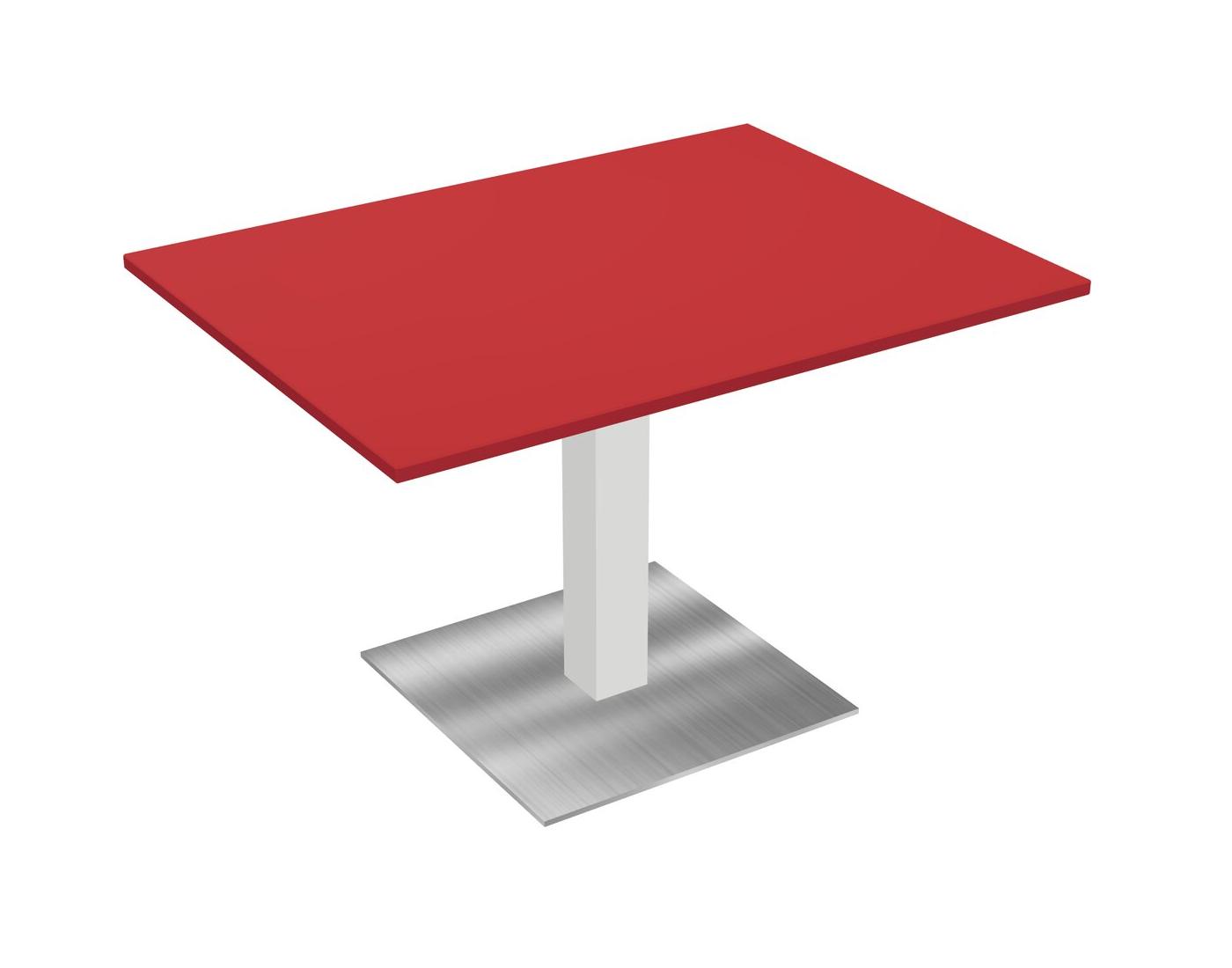 Table Modulaire Pour Bureau, Restaurant, Cafétéria, Salle De Pause Et Service De Restauration, Avec Plateau Rouge Prismatique, Pieds Carrés Blancs Et Plaque De Base Carrée Chromée