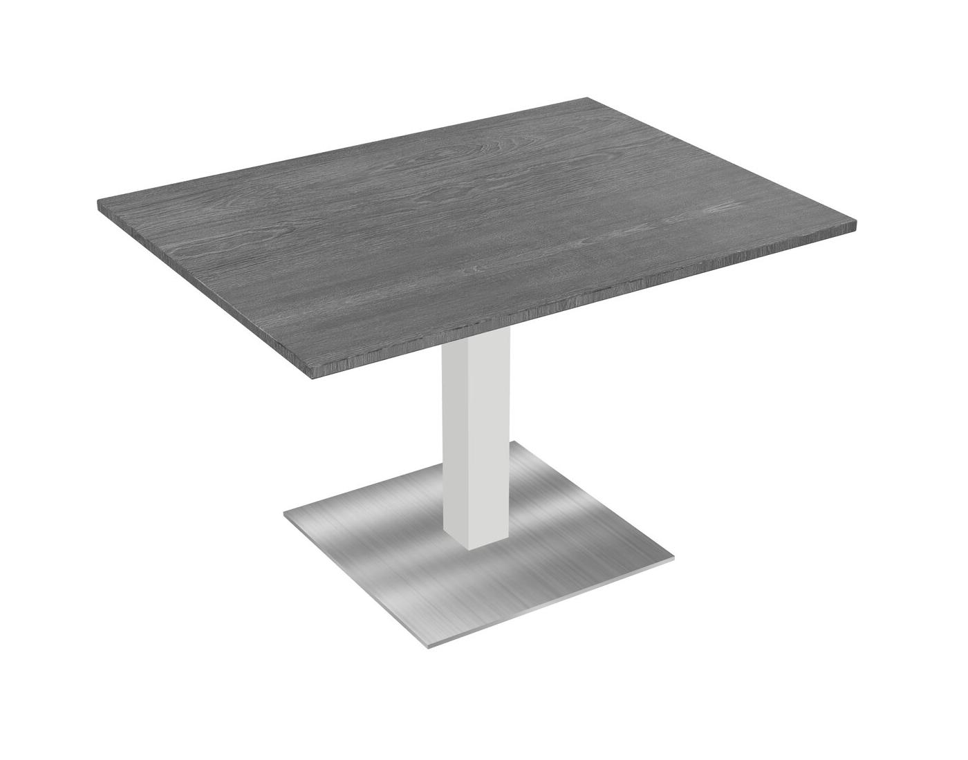 Table Modulaire Pour Bureau, Restaurant, Cafétéria, Salle De Pause Et Service De Restauration, Avec Plateau Gris, Pieds Carrés Blancs Et Plaque De Base Carrée Chromée