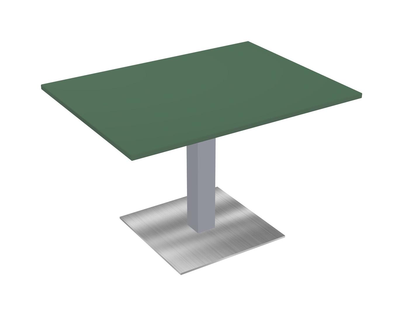 Table Modulaire Pour Bureau, Restaurant, Cafétéria, Salle De Pause Et Service De Restauration, Avec Plateau Vert, Pieds Carrés Gris Et Plaque De Base Carrée Chromée