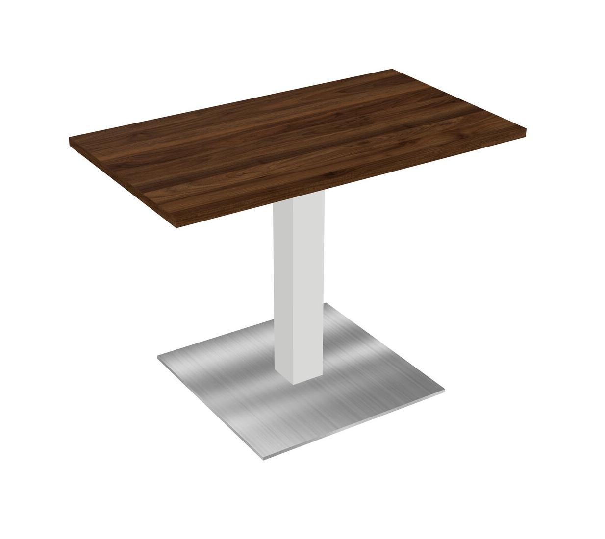 Table Modulaire Pour Bureau, Restaurant, Cafétéria, Salle De Pause Et Service De Restauration, Avec Plateau En Noyer De Colombie, Pieds Carrés Blancs Et Plaque De Base Carrée Chromée