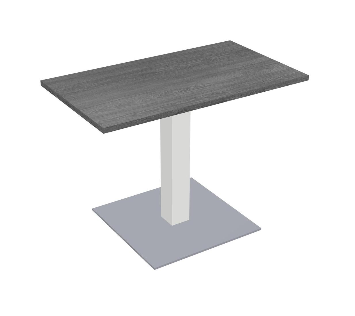Table Modulaire Pour Bureau, Restaurant, Cafétéria, Salle De Pause Et Service De Restauration, Avec Plateau Gris, Pieds Carrés Blancs Et Base Carrée Grise