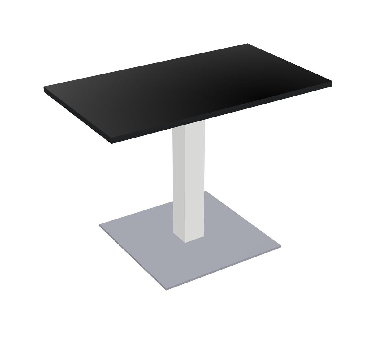 Table Modulaire Pour Bureau, Restaurant, Cafétéria, Salle De Pause Et Service De Restauration, Avec Plateau Noir, Pieds Carrés Blancs Et Base Carrée Grise