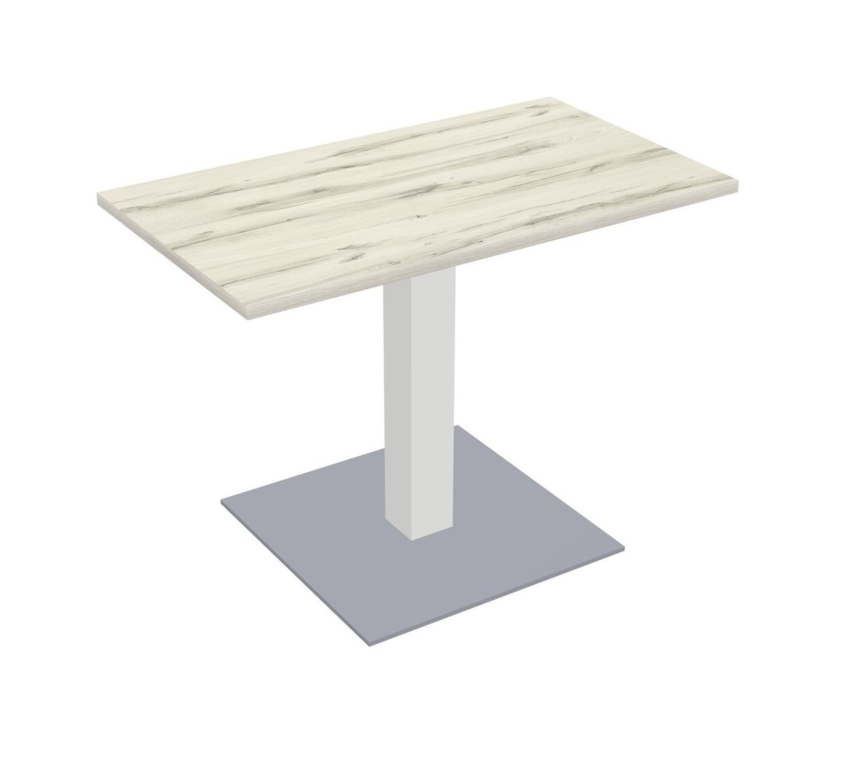 Table Modulaire Pour Bureau, Restaurant, Cafétéria, Salle De Pause Et Service De Restauration, Avec Plateau En Bois Heinne Holz, Pieds Carrés Blancs Et Plaque De Base Carrée Grise