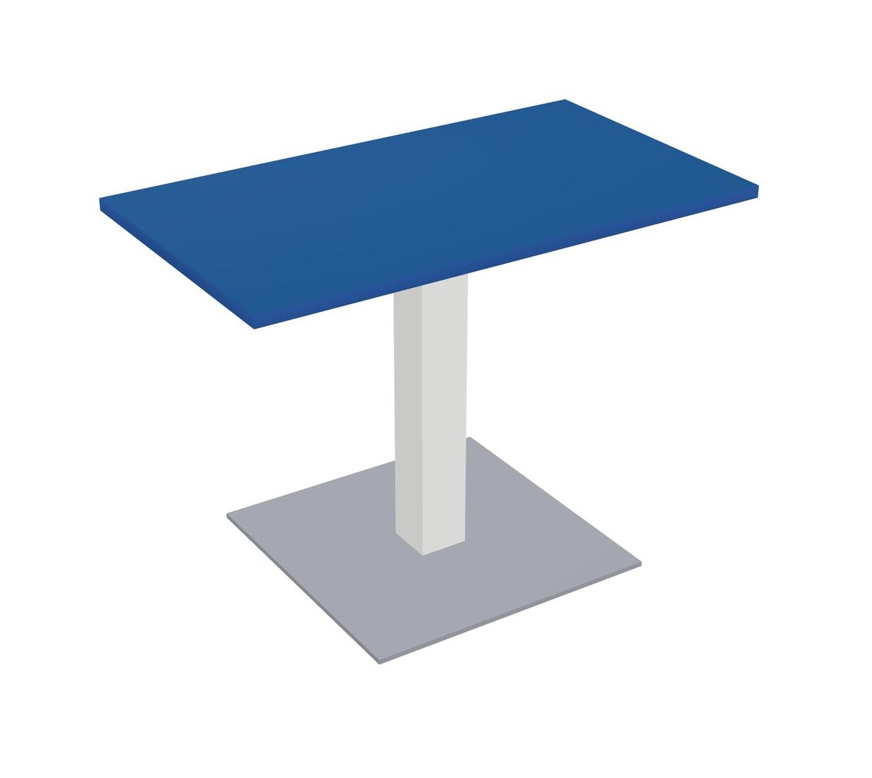 Table Modulaire Pour Bureau, Restaurant, Cafétéria, Salle De Pause Et Service De Restauration, Avec Plateau Bleu Prismatique, Pieds Carrés Blancs Et Plaque De Base Carrée Grise