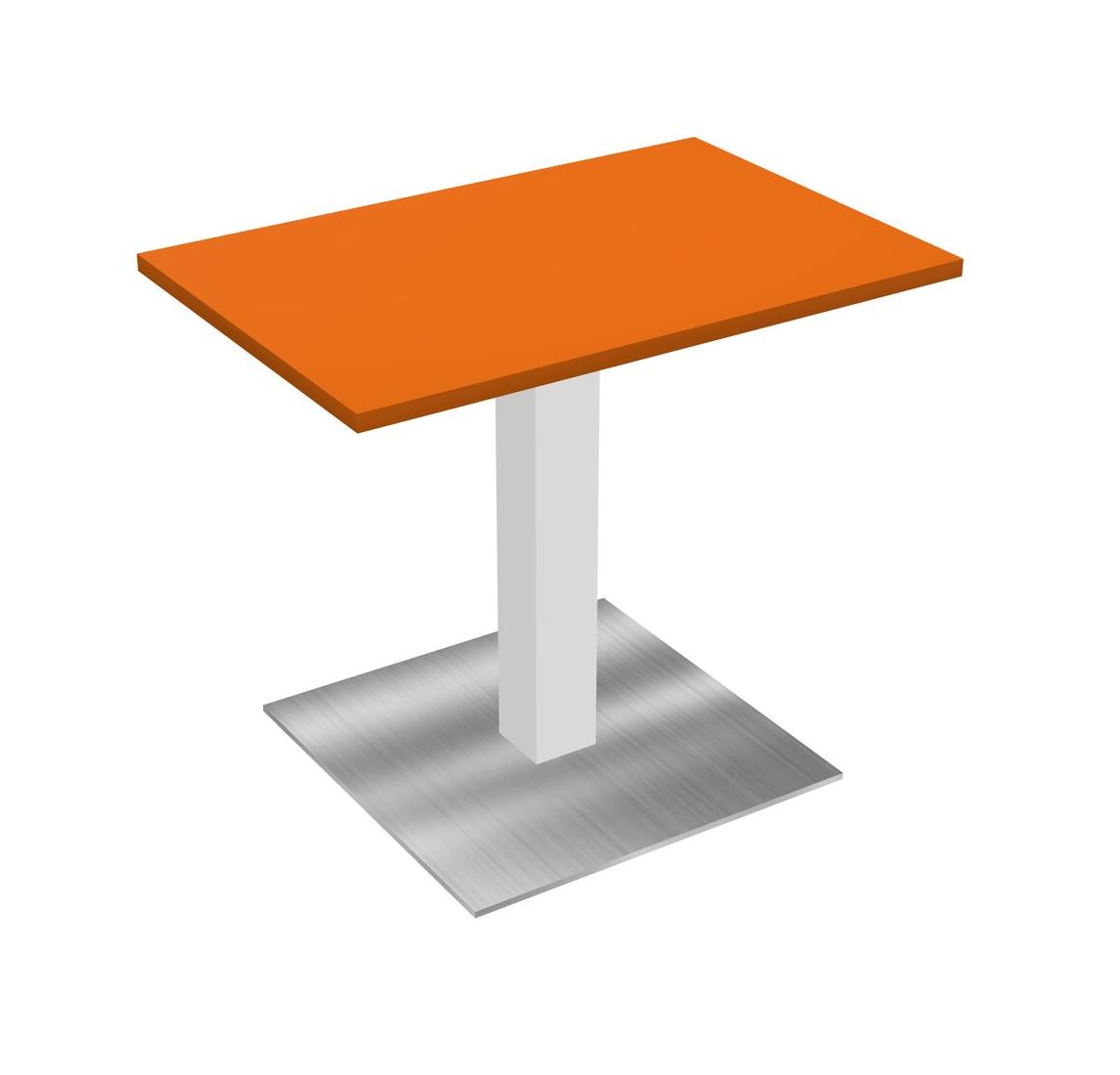 Table Modulaire Pour Bureau, Restaurant, Cafétéria, Salle De Pause Et Service De Restauration, Avec Plateau Orange, Pieds Carrés Blancs Et Base Carrée Chromée