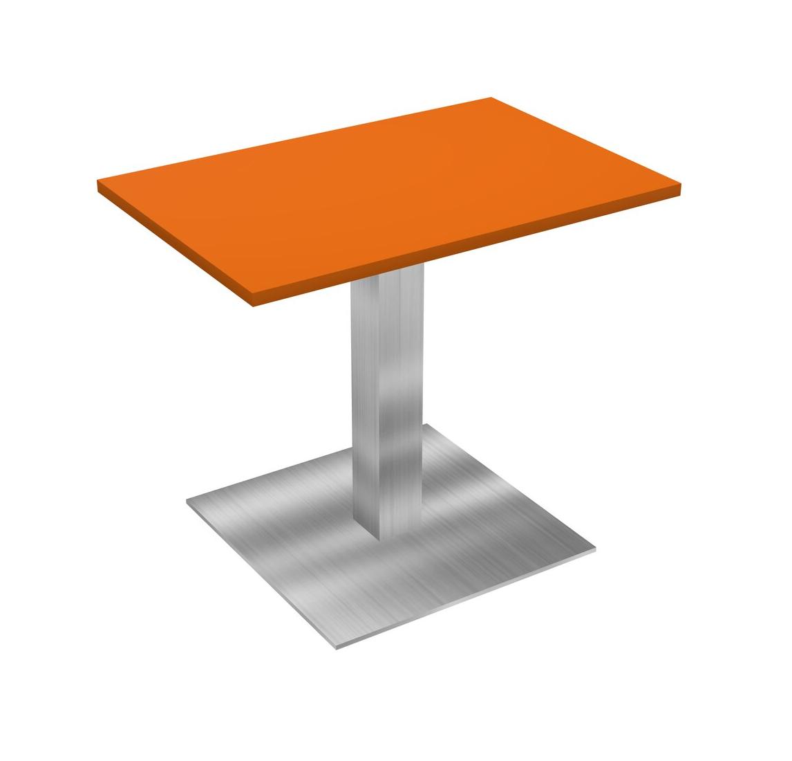 Table Modulaire Pour Bureau, Restaurant, Cafétéria, Salle De Pause Et Service De Restauration, Avec Plateau Orange, Pieds Carrés Chromés Et Plaque De Base Carrée Chromée