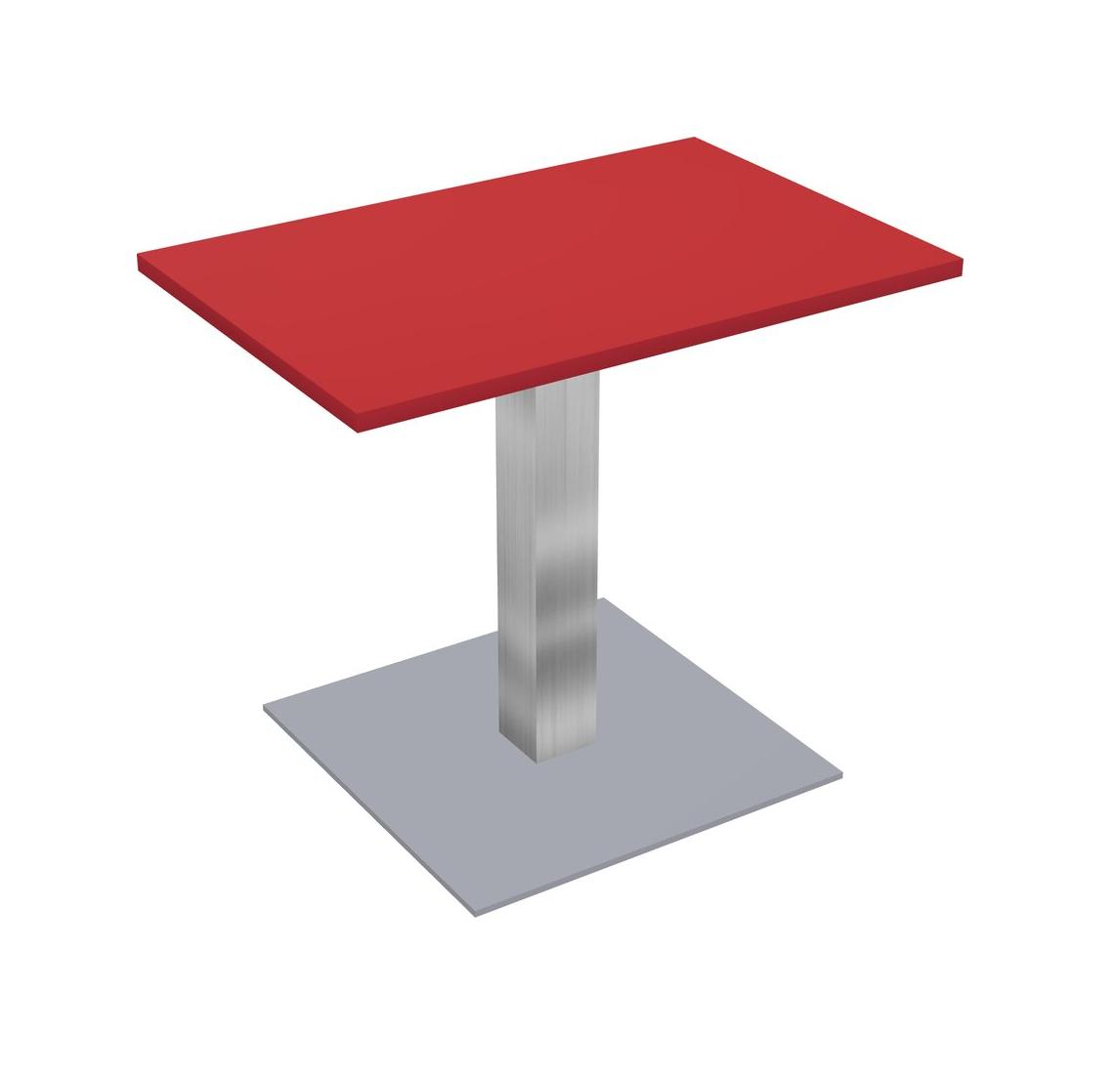 Table Modulaire Pour Bureau, Restaurant, Cafétéria, Salle De Pause Et Service De Restauration, Avec Plateau Rouge Prismatique, Pieds Carrés Chromés Et Plaque De Base Carrée Grise