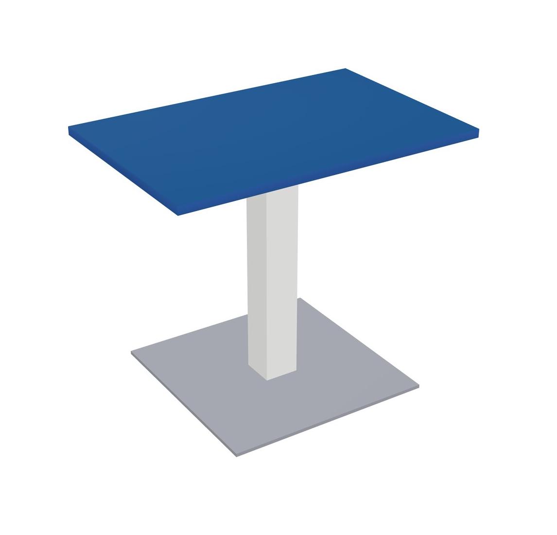 Table Modulaire Pour Bureau, Restaurant, Cafétéria, Salle De Pause Et Service De Restauration, Avec Plateau Bleu Prismatique, Pieds Carrés Blancs Et Plaque De Base Carrée Grise