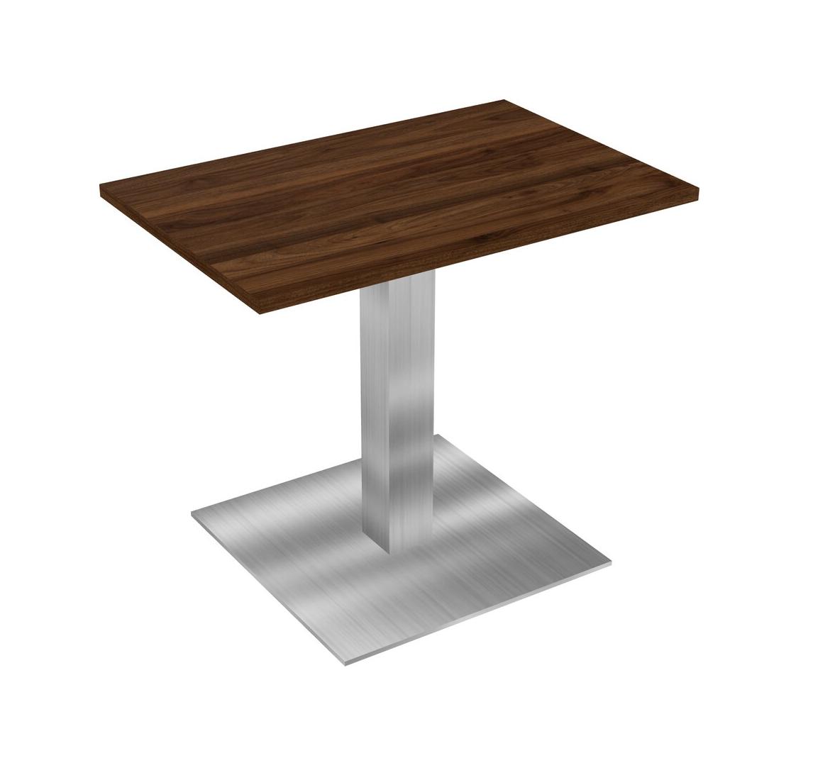 Table Modulaire Pour Bureau, Restaurant, Cafétéria, Salle De Pause Et Service De Restauration, Avec Plateau En Noyer De Colombie, Pieds Carrés Chromés Et Plaque De Base Carrée Chromée