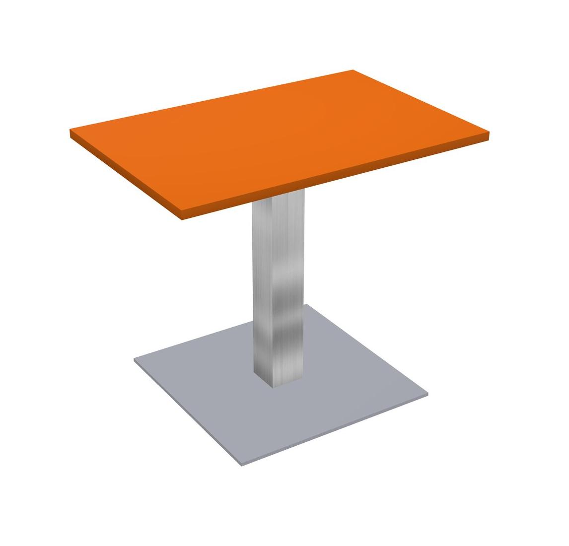 Table Modulaire Pour Bureau, Restaurant, Cafétéria, Salle De Pause Et Service De Restauration, Avec Plateau Orange, Pieds Carrés Chromés Et Plaque De Base Carrée Grise