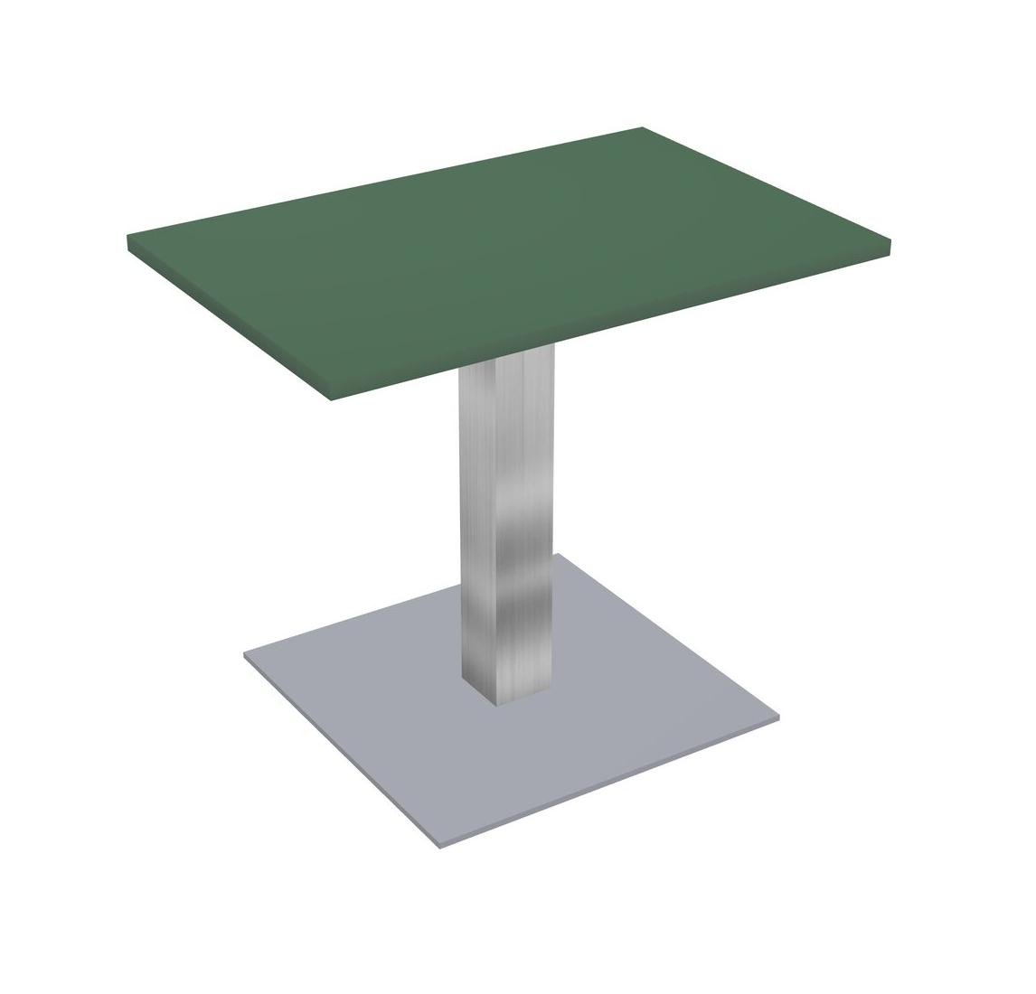 Table Modulaire Pour Bureau, Restaurant, Cafétéria, Salle De Pause Et Service De Restauration, Avec Plateau Vert, Pieds Carrés Chromés Et Plaque De Base Carrée Grise
