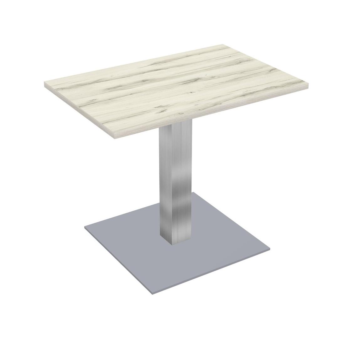 Table Modulaire Pour Bureau, Restaurant, Cafétéria, Salle De Pause Et Service De Restauration, Avec Plateau En Bois Heinne Holz, Pieds Carrés Chromés Et Plaque De Base Carrée Grise